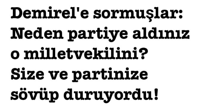 Demirel’e sormuşlar: Neden partiye aldınız o milletvekilini? Size ve partinize sövüp duruyordu! Süleyman Demirel: Oradayken bize bağırıyordu. Şimdi bizim kapıya bağlayacağız o tarafa havlayacak! (siyaset işte tam olarak böyle değil mi. Ve böyle o kadar çok kiş var kş neyse)