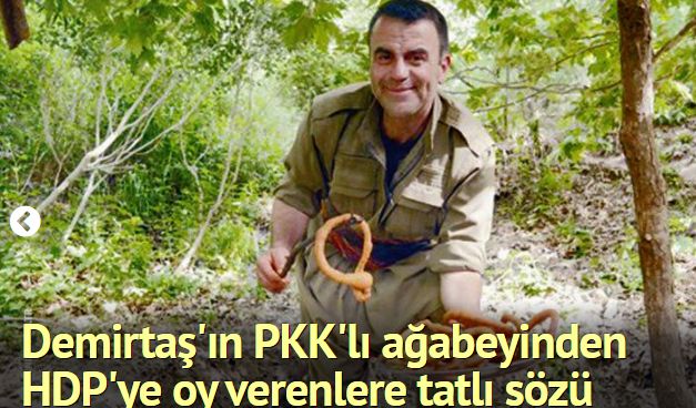 PKK'ya bağlı yayın yapan Yeni Özgür Politika gazetesinin dağda ziyaret ettiği, HDP'nin Cumhurbaşkanı adayı Selahattin Demirtaş'ın PKK'lı ağabeyi Nurettin Demirtaş, "HDP’ye ve kardeşime oy verenlere Kürdistan dağlarında tatlı ısmarlayabilirim" dedi.