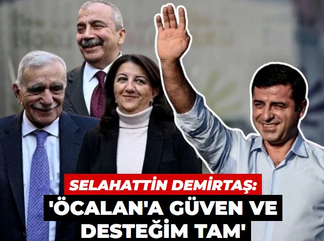 "DEM Parti İmralı Heyetimizin ziyareti vesilesiyle herkese yürek dolusu selam, sevgilerimi İletiyorum. Büyük bir fedakarlık ve ciddiyetle çalışmalarını sürdüren heyetimize de teşekkürlerimi sunarken ayrıca kendilerine, partimiz DEM Parti'ye, özellikle İmralı Tecrit Adasında demokratik çözüm ve barış için büyük çaba sarf eden Sayın Abdullah Öcalan'a güven ve desteğimin tam olduğunu belirtmek istiyorum.