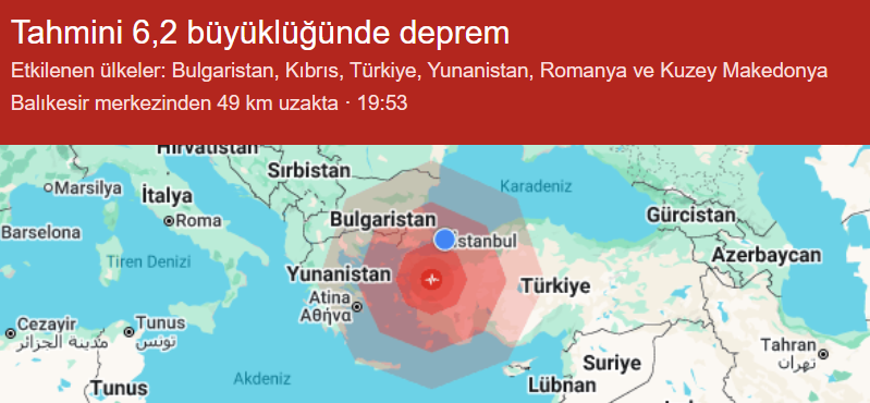 AFAD, saat 19.53'te merkez üssü Balıkesir'in Sındırgı ilçesi olan 6,1 büyüklüğünde deprem meydana geldiğini bildirdi.