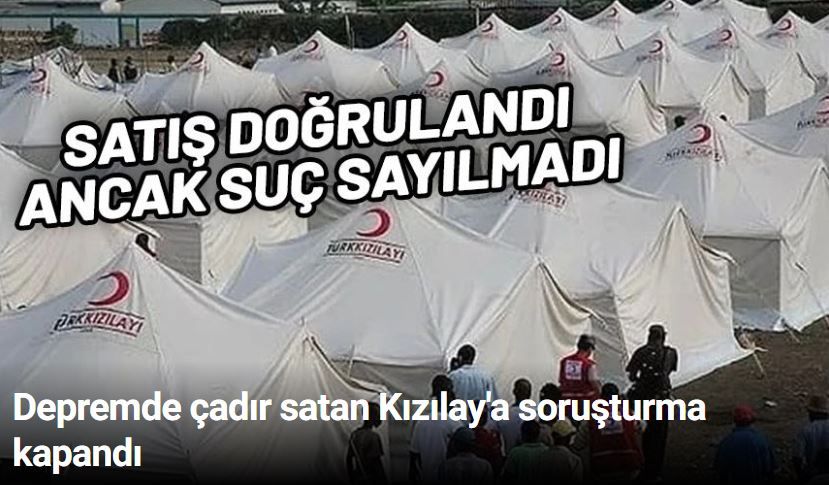 Depremin dondurucu soğuğunda halk yardım beklerken Kızılay’ın çadır sattığının ortaya çıkması, yargıya taşınmıştı. Farklı illerden yapılan başvurular Ankara Cumhuriyet Başsavcılığı’nda birleştirilmiş, aralarında dönemin Kızılay Başkanı Kerem Kınık ve mevcut başkan Fatma Meriç Yılmaz’ın da bulunduğu 19 isim "şüpheli" sıfatıyla dosyaya girmişti.