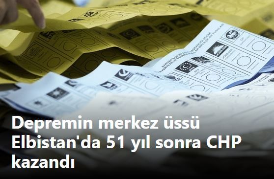 Depremin ağır hasar bıraktığı Elbistan’da CHP Belediye Başkan Adayı Erkan Gürbüz yüzde 37 oy oranı ile AK Parti’nin adayı Murat Mercan’ı geride bıraktı. CHP 51 yıl sonra Elbistan’da belediyeyi kazandı.