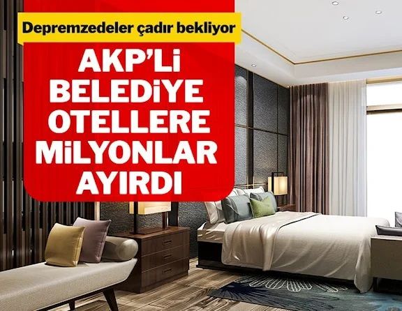 AKP'li belediye 23 milyon 640 bin TL’lik konaklama ihalesine çıktı. Ancak konaklayacak kişiler depremzedeler değil, 2023 yılı içerisinde yapılacak dini, milli ve resmi bayram törenleri, sinema, tiyatro, sempozyum, konferans, belediye faaliyetleri, şenlikler, açılış törenleri gibi etkinliklerde ile gelecek misafirler ve belediye tarafından gönderilecek görevliler için. Konaklama yurt içi ve yurt dışında 345 yıldızlı otellerde gerçekleşecek.