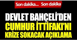 MHP Genel Başkanı Devlet Bahçeli'den Cumhur İttifakı'nda krize neden olabilecek açıklamalar geldi. Devlet Bahçeli'nin Saray ittifakını yeni bir krize sokacak açıklamalarını MHP Genel Başkan Yardımcısı Semih Yalçın, Twitter hesabından paylaştı.Yalçın, Devlet Bahçeli'nin "Kararsızlığın, inançsızlığın, gecikmenin ve tembelliğin başarısızlığı hazırlayan unsurlar olduğu şüphesizdir.