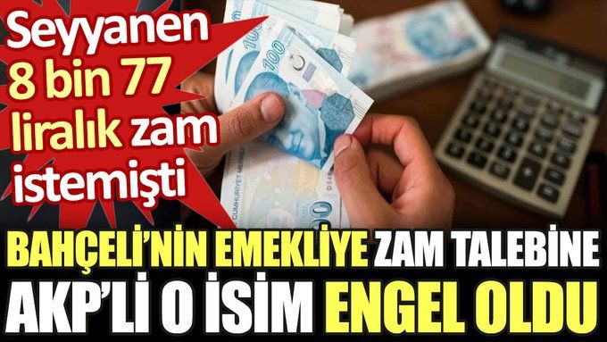 Milliyetçi Hareket Partisi (MHP) Genel Başkanı Devlet Bahçeli, emekli maaşlarına seyyanen zam çağrısı yapmış; “Emeklilerimize yapılan yüzde 25’lik maaş artışı, gördüğümüz kadarıyla makul ve yeterli bulunmamıştır.” diyen Bahçeli, “8 bin 77 liralık seyyanen artışın kök ücrete aynısıyla emekli maaşlarına yansıtılması beklentimiz ve talebimizdir.” ifadelerini kullanmıştı.
