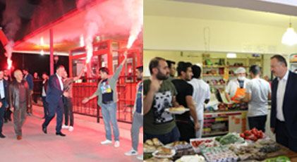AKP’Lİ ADAYI DEVLET YURDU GİRİŞİNDE MEŞALELERLE KARŞILADILAR