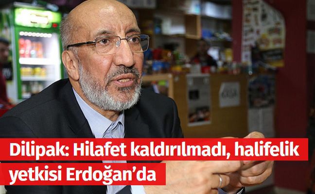 Akit yazarı Abdurrahman Dilipak, hilafetin kaldırılmadığını öne sürerek, “Kanuni halife yetkisi mana ve mefhum olarak Tayyip Erdoğan’ın şahsında mündemiçtir” dedi.