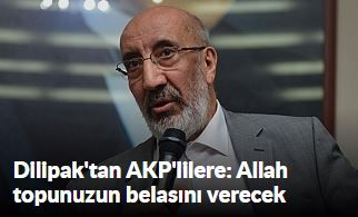 Hükümete yakın Yeni Akit gazetesi yazarlarından Abdurrahman Dilipak, bugünkü köşesinde AKP'lilere seslenerek, "Allah topunuz belasını verecektir elbet bir gün mutlaka. Ne zaman “biz zalimlerden olduk” diyecek ve tövbe edeceksiniz, Allah’ın gazabı yakanıza yapıştıktan sonra mı" diye yazdı.