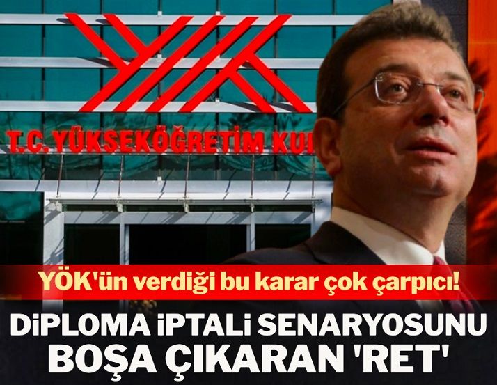 İstanbul Büyükşehir Belediye (İBB) Başkanı Ekrem İmamoğlu'nun 1994 yılında aldığı diploma, 18 Mart'ta İstanbul Üniversitesi Rektörlüğü'nün oy çokluğu ile aldığı karar sonucunda iptal edildi.