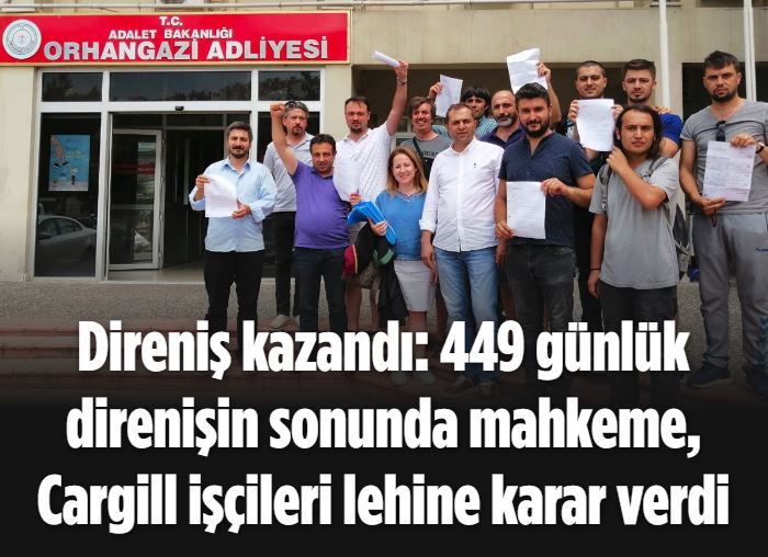Direnişleri 449 gündür süren ve sendikalı oldukları için işten atılan Tek Gıdaİş’e bağlı Cargill işçilerinin açtığı işe iade davasının bugün karar duruşması görüldü. Mahkeme Cargill işçileri hakkında, sendikal sebeplerle işten çıkarıldıklarına hükmederek, işvereni tazminata mahkum etti.