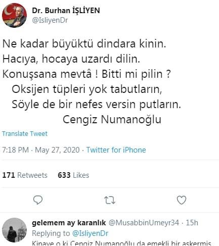 Genelkurmay eski Başkanı İsmail Hakkı Karadayı’nın vefatı sonrası Diyanet İşleri Başkan Yardımcısı Burhan İşliyen’in, sosyal medya hesabından yaptığı “Ey Mevta” paylaşımı tepki çekti.