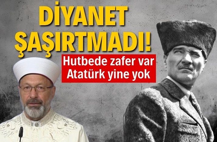 Diyanet İşleri Başkanlığı'nın cuma hutbesinde, 30 Ağustos Zafer Bayramı kutlanırken, Türkiye Cumhuriyeti'nin kurucusu Mustafa Kemal Atatürk'ün adı anılmadı.
