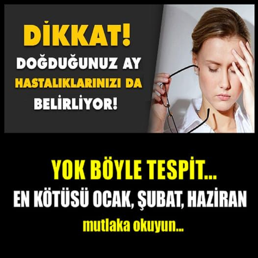 Doğduğunuz ay sizi uyarıyor: Hangi ayda hangi hastalık riski var Bilim insanlarının yaptığı bir araştırmaya göre kişinin yakalandığı hastalıklarda doğduğu ay da önemli rol oynuyor.
