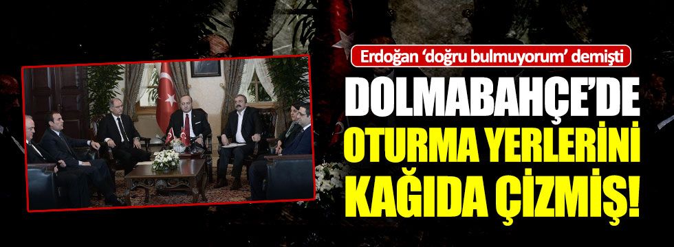 Yeni parti kuracağı konuşulan eski Başbakan Ahmet Davutoğlu’na yakın isimler, Cumhurbaşkanı Recep Tayyip Erdoğan’ın Dolmabahçe Mutabakatı’nda oturma yerlerini A4 kağıdına çizdiğini iddia etti. Erdoğan, “Ben oradaki toplantıyı doğru bulmuyorum” diyerek sonradan toplantıya tepki göstermişti.