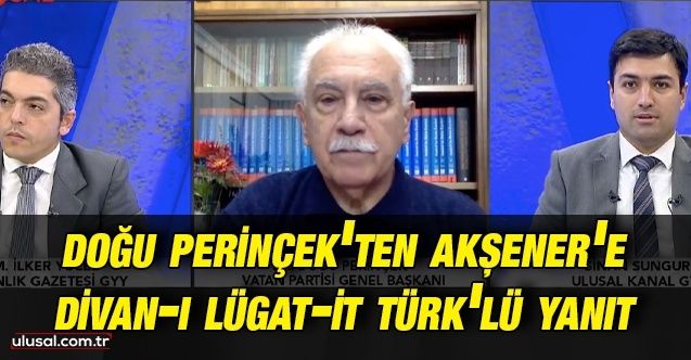 Meral Akşener Amerikan yalanlarının memureliğini yapıyor” diyen Vatan Partisi Genel Başkanı Doğu Perinçek, “Çin konusunda Amerikan Büyükelçisi ile konuşuyor arkasından bu yalanları ortaya koyuyor. Divanı Lügatit Türk yasakmış, hayır değil. Ben kendim satın aldım kendisine gösteriyorum, yalan. Son derece özenli bir cilt, çok kaliteli bir kağıda basılmış ciltler. Uygurcadır. Ortadan bir sayfa açın, peş peşe iki tane sözcüğü okuyun latin harfleriyle de var. Divanı Lügatit Türk’te olan sözcüklerin hem Uygurcası hem Türkçesi var. 1977 yılında yaptığımız ziyaretimizdeki alfabe latin alfabesiydi. Mesela hiç unutmuyorum duvarda yazıyordu ‘Yaşasın dünye helglerinin bütün birligi’ ‘Yaşasın dünya halkların birliği’ yazıyordu. Biz bütün duvarlarda, bütün yazılarda okuyorduk. Fakat fanatizm ve yobaz cereyan yükseldi. O yobaz cereyan maalesef oraya da gitti bizim Uygurlarımız biz yazımızı arap alfabesine çevirmek istiyoruz dediler. Çinlilerde büyük bir hata yaptı, Uygurlar böyle istiyor onların özgürlüklerine izin verelim, müdahale etmeyelim ne istiyorlarsa yapalım, arap alfabesi ile yazmaları çizmeleri İslamiyete de uygundur dediler ve arap alfabesine geçtiler. Büyük bir hata yaptılar biz onlara hata yapıyorsunuz diye söyledik. Sonradan da sanıyorum pişman oldular ama yine o arap alfabesi Uygur Türkçesi ile kullanılan bir alfabe.”ifadelerini kullandı.