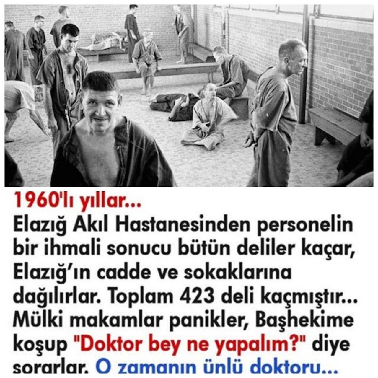 1960'lı yıllarda Elazığ Akıl Hastanesinden personelin bir ihmali sonucu bütün deliler kaçar, Elazığ’ın cadde ve sokaklarına dağılırlar. Toplam 423 deli kaçmıştır. Mülki makamlar panikler, Başhekime koşup "doktor bey ne yapalım" diye sorarlar. ..