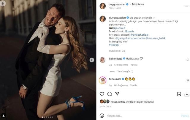 İlk önce YouTube kanalında makyaj malzemeleriyle dolu ve o yıllardan beri büyük beğeni toplayan Duygu Özaslan, iki önce basketbolcu sevgilisi Can Maxim Mutaf ile evlendi. Paris'te dünyaevine çift, iki gün üst üste davet etti.