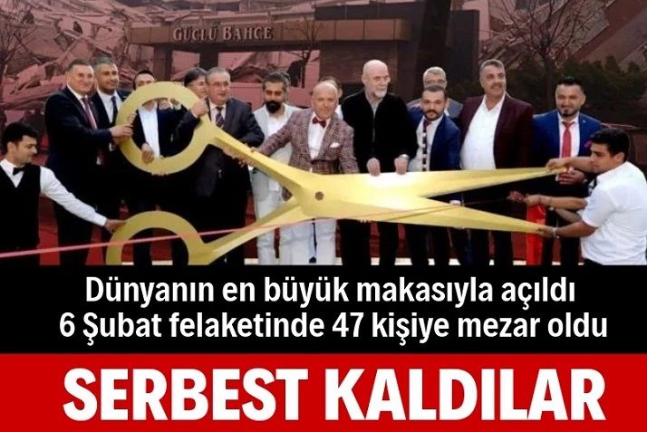 6 Şubat 2023 depremlerinde yıkılan Güçlü Bahçe Sitesi, 2019 yılında "dünyanın en büyük makası"yla açılmıştı. Altın renkli büyük makas etrafında poz verenler arasında, açılışa katılan dönemin Hatay Büyükşehir Belediyesi Başkanı Lütfü Savaş, 27. dönem AK Parti Hatay Milletvekili Sabahat Özgürsoy Çelik, dönemin Yayladağı Belediye Başkanı Mustafa Sayın, iş insanları ve STK temsilcileri yer almıştı.
