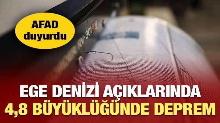 Afet ve Acil Durum Yönetimi Başkanlığı'nın (AFAD) internet sitesinde yer alan bilgiye göre, Ege Denizi'nde 4,8 büyüklüğünde sarsıntı kaydedildi.