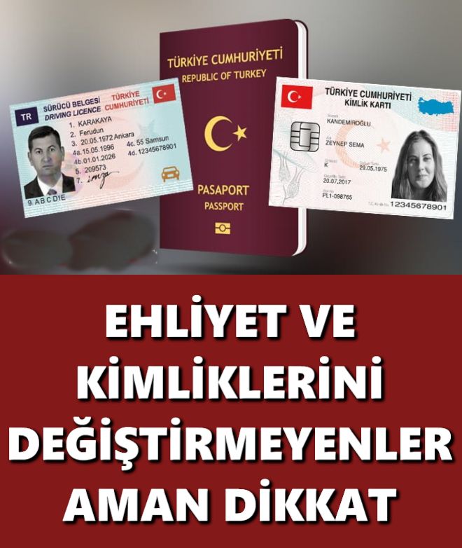 EHLİYET VE KİMLİKLERİNİ DEĞİŞTİRMEYENLER AMAN DİKKAT