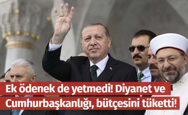 Ekim ayı sonunda Diyanet 7.7 milyarlık bütçesinin 7 milyarını harcarken Cumhurbaşkanlığı da 845 milyondan 1.5 milyara çıkartılan bütçe ödeneğinin 1.1 milyarını tüketti. Lağvedilen Başbakanlık ise 1.6 milyar olan ödeneğinin tümünü harcadı.