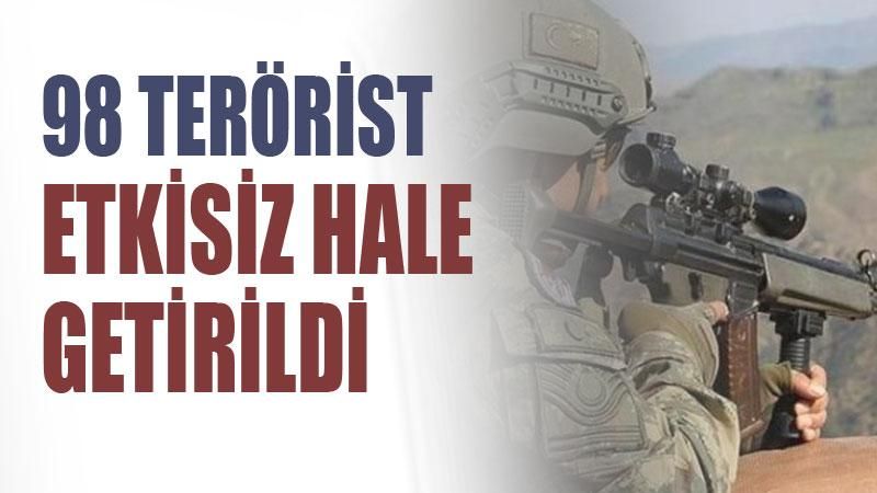 Çataklı, iç güvenlik operasyonları çerçevesinde, ekim ayında kırsal alanda 2'si büyük, 39'u orta çaplı olmak üzere 12 bin 161 operasyon yapıldığını belirterek, "Şehirlerde ise terör örgütlerinin hücre yapılanmaları ve iş birlikçilerine yönelik 1390 operasyon yapılmıştır. Bu operasyonlarda toplam 98 terörist etkisiz hale getirilmiştir. Etkisiz hale getirilen bu teröristlerin 71'i PKK/KCK, 27'si DEAŞ mensubudur. Bunlardan 1'inin mavi, 1'inin turuncu, 3'ünün gri kategoride olduğu tespit edilmiştir" dedi.