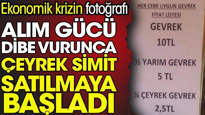 Sosyal medyada yayılan fotoğraflarda yarım simidin 5 liradan, çeyrek simidin ise 2,5 liradan satışa sunulduğu görüldü.