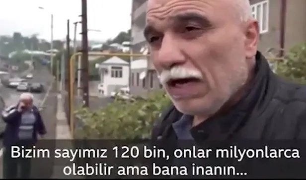 Görüntülerde Ermeni bir vatandaşın Azerbaycan'a meydan okuduğu anlarda bölgenin bombalanması ile meydan okuyan vatandaşın korku içinde bölgeden kaçtığı anlar yer alıyor.