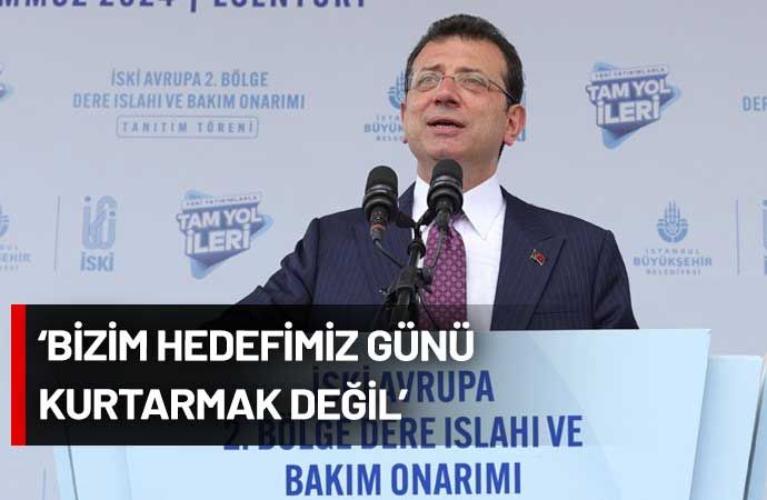 Tamamlanan ıslah ve dere temizliği çalışmasının yaklaşık 4 milyon kişiyi ilgilendirdiğini kaydeden İmamoğlu, “İnsanımızın hayatını kolaylaştıran rahat bir nefes almasını sağlayan yağmurlu havalarda kaygı duymayacakları bir altyapının varlığını insanlarımıza sunmak bizim için çözüm demek durumu idare etmek değil, kalıcı çözüm bulmak demektir. Gerçek çözüm demektir. Günü kurtarmak, durumu idare etmek, göz boyamak ya da seçimi kazanmak için çözüm üretme pozisyonu bizim pozisyonumuz değil. Her zaman söyledim bizim için hedef seçim kazanmak değil. Bizim hedefimiz İstanbulluların sorunlarını çözmek, İstanbulluların, Esenyurtluların gönüllerini kazanmaktır. Baktığımız pencere odur, Çocukların geleceğini kurtarmaktır” dedi.