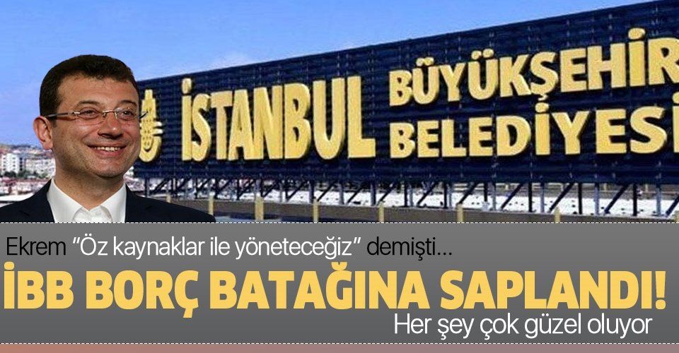 Ekrem İmamoğlu yönetimindeli İBB borç batağına saplandı. İstanbul Büyükşehir Belediyesi (İBB) Başkanı Ekrem İmamoğlu seçim döneminde "İBB'nin yeterli kaynağı var. Öz kaynakları ile belediyeyi rahatça yönetirim. O kaynağı akılcı ve güvenilir bir şekilde dağıtacak sistemi ve belediye başkanı yok" ifadelerini kullandı. İBB Başkanlık koltuğuna oturduktan sonra 2019 bütçesi 23 milyar 800 milyon TL, 2020 bütçesi 25 milyar 800 milyon TL olan İBB'yi 1 buçuk yılda 20 milyar TL borçlandırdı. İŞTE BORÇLANMA TAKVİMİ İşte İBB yönetiminin borçlanma tarihleri: 11 Temmuz 2019: 1 milyar 525 milyon TL iç borçlanma. 12 Mart 2020: İBB Atık Yakma ve Enerji Üretim Tesisi" için 150 milyon Euro + Sigorta primi tutarında dış borçlanma 12 Mart 2020: 208 milyon TL iç borçlanma. 11 Mayıs 2020: 248 milyon TL iç borçlanma. 11 Mayıs 2020: 400 milyon TL iç borçlanma. 11 Mayıs 2020: İETT için 100 milyon TL iç borçlanma. 11 Mayıs 2020: KabataşMecidiyeköyMahmutbey Metro Hattı projesi için 73 milyon 304 bin 745,35 Euro + Sigorta primi tutarında dış borçlanma. 17 Eylül 2020: Silivri Seymen Çöp Depolama Sahasında Arıtma Tesisi Yapım İşi için 10 milyon Euro + Sigorta primi tutarında dış borçlanma. 17 Eylül 2020: İstanbul Büyükşehir Belediyesi'nin acil ihtiyaçlarının karşılanması ve bozulan nakit akışının iyileştirilmesi amacıyla 246 milyon TL iç borçlanma. 17 Eylül 2020: İstanbul Büyükşehir Belediyesi'nin acil ihtiyaçlarının karşılanması ve bozulan nakit akışının iyileştirilmesi amacıyla 406 milyon TL iç borçlanma 18 Kasım 2020: İstanbul Büyükşehir Belediyesi'nin acil ihtiyaçlarının karşılanması ve bozulan nakit akışının iyileştirilmesi amacıyla 300 milyon TL iç borçlanma. 18 Kasım 2020: İstanbul Büyükşehir Belediyesi'nin acil ihtiyaçlarının karşılanması ve bozulan nakit akışının iyileştirilmesi amacıyla 300 milyon TL iç borçlanma. 2 Aralık 2020: 580 milyon dolar Eurobond tahvili satışıyla 5 yıl vadeli yıllık yüzde 6.6 faizle 2020 için 4.5 milyar TL dış borç alındı. DİĞER İŞTİRAKLER İÇİN İSTENEN BORÇ TALEBİ 25 YILDA ANCAK DÜZELTTİK BİR 25 YIL DAHA GEREKECEK