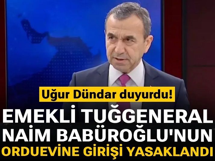 Gazeteci Uğur Dündar, Emekli Tuğgeneral, Strateji Uzmanı ve Tarihçi-Yazar Naim Babüroğlu'nun, orduevine girişinin yasaklandığını sosyal medya hesabından yaptığı paylaşımla duyurdu.