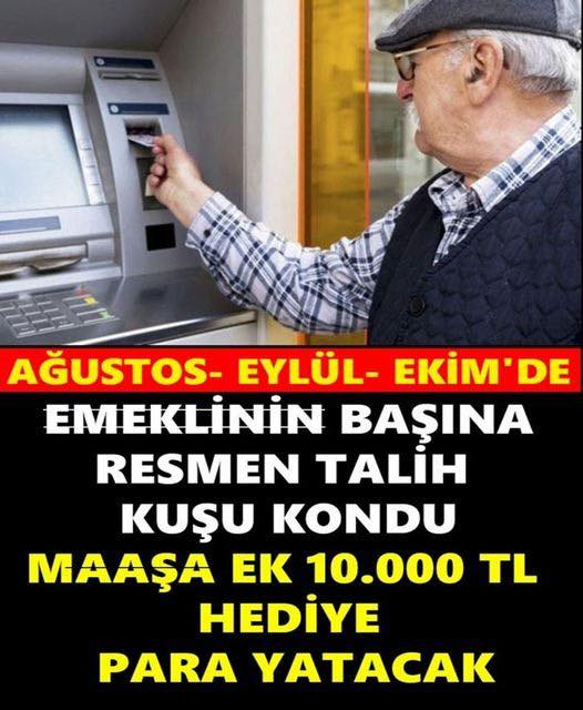 Emeklilere büyük kampanya geldi. Ağustos eylül ekim ayları emekli için resmen Bayram gibi geçecek. Emeklinin Başına Resmen Talih Kuşu Kondu..HABERİN DETAYLARINI 0KUMAK İÇİN G0’RSELE D0’KUNUN..,,,,,,,,,,,,,