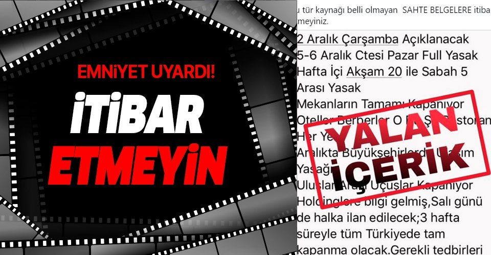 YALAN ÇÖPLÜĞÜ SOSYAL MEDYA...FETÖ PKK SOROS BOŞ DURMUYOR...TAM KAPANMA, EKONOMİK ÇÖKÜŞ VE ARDINDAN KAOS, YIKICI YARATICILIK PROPOGANDA VE PROJESİ.... Emniyet Genel Müdürlüğü, sosyal medyada dolaşıma sokulan 'Genelge' başlığı ile paylaşılan tam kapanma içerikli sahte belgelere itibar edilmemesi gerktiğini duyurdu. "BU TÜR KAYNAĞI BELLİ OLMAYAN SAHTE BELGELERE İTİBAR ETMEYİNİZ"