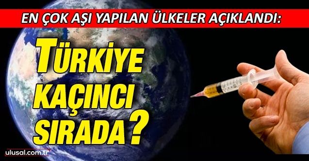Koronavirüs (Kovid19) aşı verilerinin derlendiği "Ourworldindata.org" sitesine göre, Çin, 324 milyon 310 bin doz ile dünyada en fazla aşı yapılan ülke olurken onu 259 milyon 720 bin ile ABD, 168 milyon 300 bin ile Hindistan, 53 milyon 40 bin ile İngiltere, 46 milyon 880 bin ile Brezilya, 34 milyon 410 bin ile Almanya, 25 milyon 410 bin ile Fransa, 25 milyon 92 bin ile Türkiye, 24 milyon 50 bin ile İtalya, 21 milyon 990 bin ile Endonezya, 21 milyon 750 bin ile Rusya, 21 milyon 230 bin ile Meksika, 19 milyon 50 bin ile İspanya, 15 milyon 920 bin ile Kanada, 15 milyon 700 bin ile Şili, 13 milyon 670 bin ile Polonya, 11 milyon 150 bin ile Bileşik Arap Emirlikleri (BAE), 10 milyon 580 bin ile Suudi Arabistan ve 10 milyon 500 bin ile İsrail izledi.