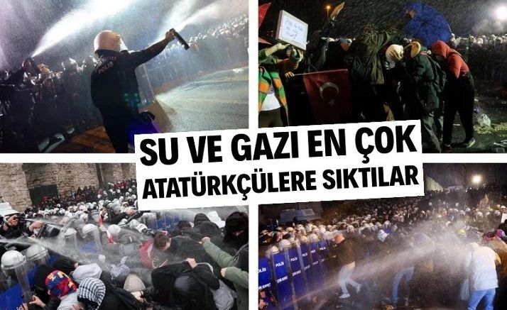 Rapora göre güvenlik güçleri tazyikli su ve biber gazı ile en çok ellerinde Türk bayrağı ve Atatürk’ün resimlerini taşıyan gençlere müdahale etti. Özellikle tarif edilen gruba doğrudan TOMA ile tazyikli su, biber gazı ve plastik mermi ile müdahale edildiği belirtildi.