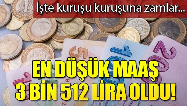 Yeni zamla birlikte en düşük memur maaşı 3 bin 512 lira olacak. Görevdeki memurlar toplu sözleşmeye göre 2019’un ocaktemmuz döneminde yüzde 4 zam alacak. Enflasyon farkı ile birlikte bu dönemde maaşlar yüzde 10.73 artacak. Zamla birlikte memurların alacağı aile yardımı da arttı. Eşi çalışmayan, 2 çocuklu memurun alacağı yardım 400 lirayı bulacak
