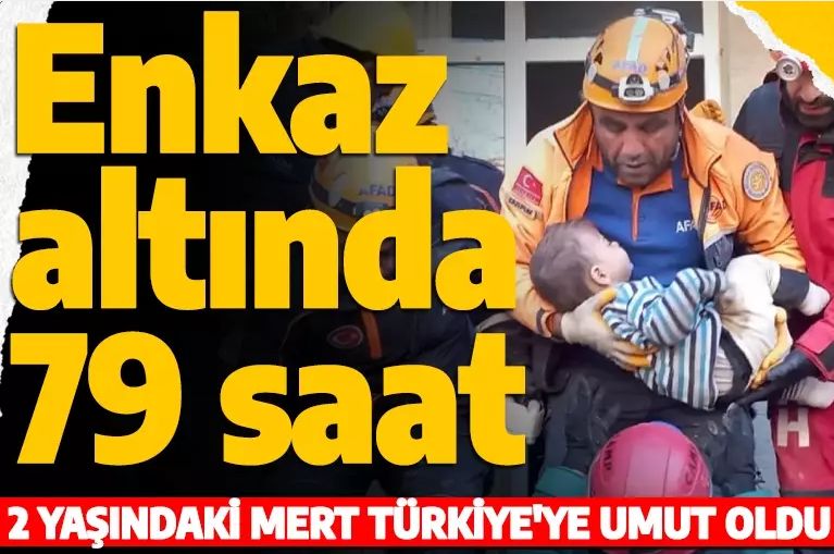 Kahramanmaraş merkezli 7.7 ve 7.6 büyüklüğündeki depremlerin 4. gününde arama kurtarma çalışmaları tüm hızıyla devam ediyor. Hatay'daki çalışmalarda 2 yaşındaki Mert Tatar, depremden 79 saat sonra enkazdan kurtarıldı.