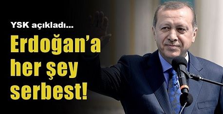 Erdoğan, bakan ve milletvekillerinin 2131 Mart günleri arasında makam araçlarını kullanamayacağı, açılış ve temel atma törenlerinin düzenlenemeyeceğine ilişkin seçim yasaklarından muaf olacak, seçim gününe kadar 'Cumhurbaşkanı’ sıfatıyla devletin tüm olanaklarını kullanarak seçim propagandası yapabilecek.