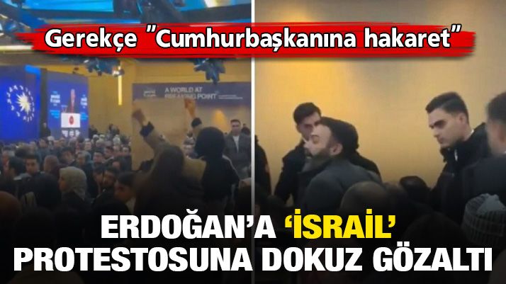 Erdoğan'ın konuşması sırasında protestoyu gerçekleştiren iki kişi ile protestoya hazırlandıkları ileri sürülen diğer iki kişi salonda, kongre merkezi önünde de İsrail'le ticaretin kesilmesi yönünde sloganlar atan 5 kişi olmak üzere toplam 9 kişi gözaltına alındı.
