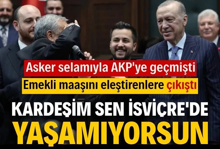 7 Ocak'ta Erdoğan'a topuk selamı verip AKP'ye katılan Çakır, bu defa emekli maaşının 20 bin olmasını eleştirenleri hedef aldı. Mersin'de katıldığı bir etkinlikte açlık sınırının altındaki emekli aylıklarını eleştirenlere, "Kardeşim, sen İsviçre'de yaşamıyorsun" diyerek tepki gösteren Çakır, sözlerinin devamında yine Erdoğan'a selam gönderdi.