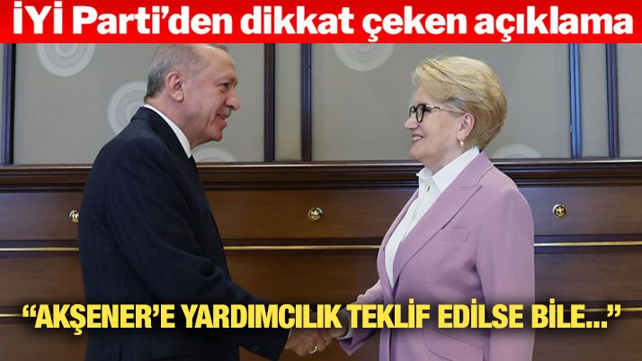 Cumhurbaşkanı ve AKP Genel Başkanı Recep Tayyip Erdoğan ile İYİ Parti eski Genel Başkanı Meral Akşener ile görüşmesinin ardından "Cumhurbaşkanı yardımcılığı" teklif edildiği iddialarına ilişkin İYİ Parti yetkilileri ''Akşener'e böyle bir teklifi yapılmadığını, yapılsa bile kabul etmeyeceğini'' söyledi.