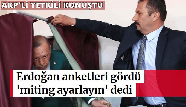 Reuters’a konuşan AKP'li yetkili şunları söyledi: “Erdoğan parti yetkililerine seçime kadar hemen hemen her gün konuşma yapabileceği birkaç miting ayarlamanın mümkün olup olmadığını sordu.”