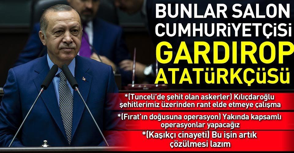 Bu kesimin Cumhuriyetimize en küçük faydaları yoktur. Ülkenin hayrına atılan ne adım varsa bunlar karşı çıkmıştır. Biz bunlara salon Cumhuriyetçisi diyoruz. Bunlar milletimize tarihinden, medeniyetinden kopartarak kimliksiz bir batıcılığa mahkum etmek istediler. Darbelerin arkasında baskıcı ve dikta heveslisi zihniyet vardır. CHP, bu zihniyetin siyasi temsilcisidir. CHP'nin gerçek yüzünü herkesin bilmesi lazım. Yıllarca Cumhur ve Cumhuriyeti birbirinden ayırmaya çalışanlar büyük zarar verdi. Paradan, puldan Atatürk'ü çıkaran CHP'dir.