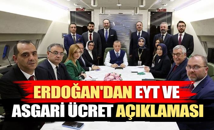Cumhurbaşkanı Erdoğan, Türkmenistan ziyareti dönüşü uçakta gazetecilerin sorularını yanıtladı. Erdoğan, "Tabii bizim hedefimiz, arkadaşlarımızla da yaptığımız görüşmelerde, bu yıl sonuna kadar emeklilikte yaşa takılanlar olayını çözmek. Asgari ücret meselesiyle ilgili çalışmalar da aynı şekilde zaten yoğun bir şekilde devam ediyor" dedi.
