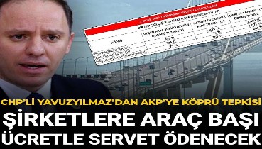 CHP’li Yavuzyılmaz’dan AKP’ye köprü tepkisi: "Yeni yılda araç başı ücretle şirketlere servet ödenecek"0 izlenme