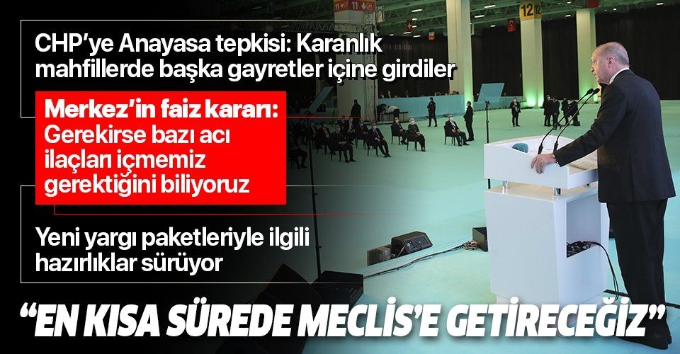 Biz reformlara ara vermedik. Değişim iradesini hiç elden bırakmadık. Yeni yargı paketleriyle ilgili hazırlıklar sürüyor. En kısa sürede Meclis gündemine getireceğiz.Yeni reformlar ve atılımlar için hazırlıklar yapıyoruz. Milletimizin geleceğe güvenle bakabilmesi için bugün almamız gereken tedbirler neyse onları hayata geçirmekten kaçınmıyoruz.
