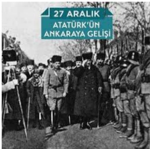 Cumhurbaşkanı Recep Tayyip Erdoğan, 27 Aralık Gazi Mustafa Kemal Atatürk’ün Ankara’ya gelişinin yıl dönümü dolayısıyla bir mesaj yayımladı. Erdoğan mesajında, "Gazi Mustafa Kemal Atatürk ve İstiklal Savaşı’nın tüm kahramanlarını saygı ve rahmetle anıyor, tüm Ankaralıları en kalbi duygularımla selamlıyorum” ifadelerini kullandı..