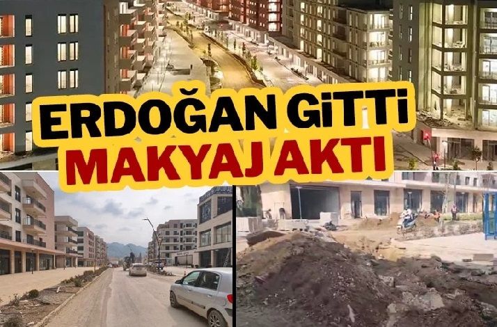 2025’in son aylarında Cumhurbaşkanı Tayyip Erdoğan’ın bölgeye yapacağı ziyaret için şehir brandalarla süslendi ve ‘herşey yolunda’ imajı verildi. Bu imaj için süslenip ışıklandırılan yerlerden Atatürk Caddesi’nde Erdoğan gezdi. Çevre ve Şehircilik Bakanı Murat Kurum, bu caddenin süslenmiş halini video ile paylaşarak, “Küllerinden doğan Hatay’ımız yeniden göz kamaştırıyor” dedi. O caddede bugün asfaltların söküldüğü ve altyapı çalışmalarının hâlâ sürdüğü görüldü.