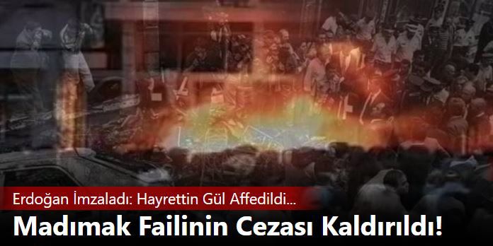 Resmi Gazete'nin bugünkü sayısında Cumhurbaşkanı Recep Tayyip Erdoğan'ın imzasıyla yayınlanan karara göre, Madımak Katliamı'nın faillerinden Hayrettin Gül‘ün cezası ‘sürekli hastalık’ gerekçesiyle kaldırdı.