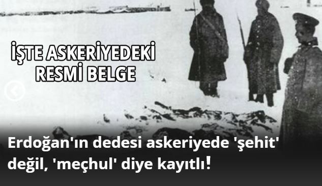 Dedesinin Sarıkamış'ta yaşanan faciada donarak şehit olduğunu ileri süren Erdoğan'ın bu sözleri Genelkurmay'daki şehit kayıtları ile uyuşmuyor.